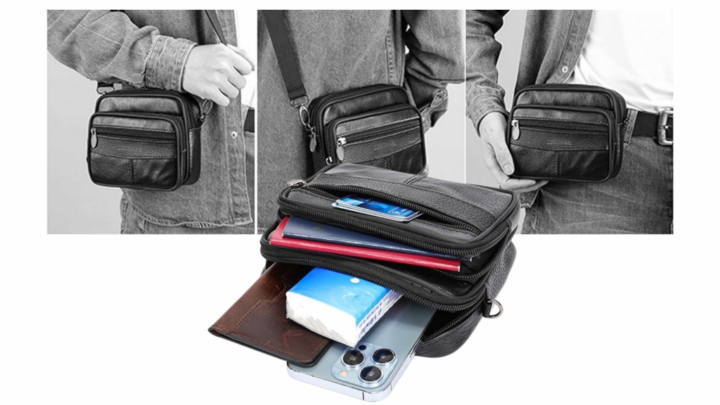 • Έξυπνη Οργάνωση: Παρά τις compact διαστάσεις του, διαθέτει 3 ανεξάρτητες θήκες με φερμουάρ, προσφέροντας ασφαλή χώρο για το κινητό, το πορτοφόλι, τα κλειδιά, το διαβατήριο, ακόμα και τον φορτιστή σας.
