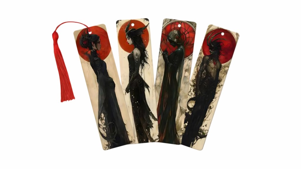 Μοντέρνος, σκοτεινός, αποκρυφιστικός ξύλινος σελιδοδείκτης με 4 διαφορετικά σχέδια* τύπου Dark Fantasy και Gothic Art, με επιρροές από γιαπωνέζικες σκοτεινές φιγούρες.