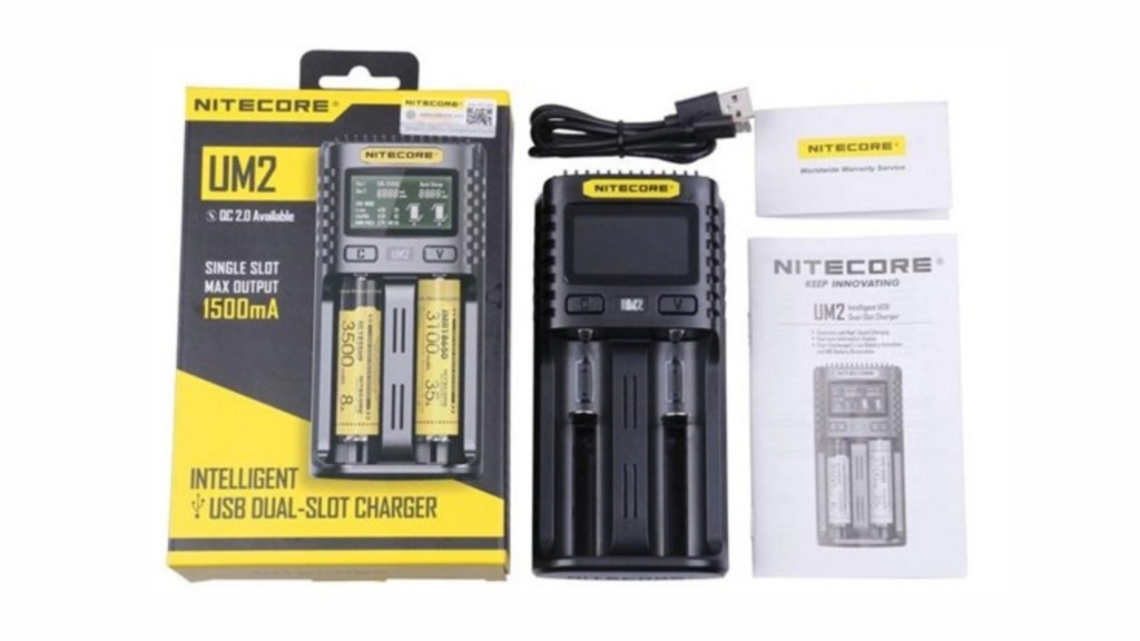 Υψηλής ποιότητας φορτιστής 2 μπαταριών Nitecore UM2 για όλων των ειδών επαναφορτιζομένων κυλινδρικών μπαταριών!