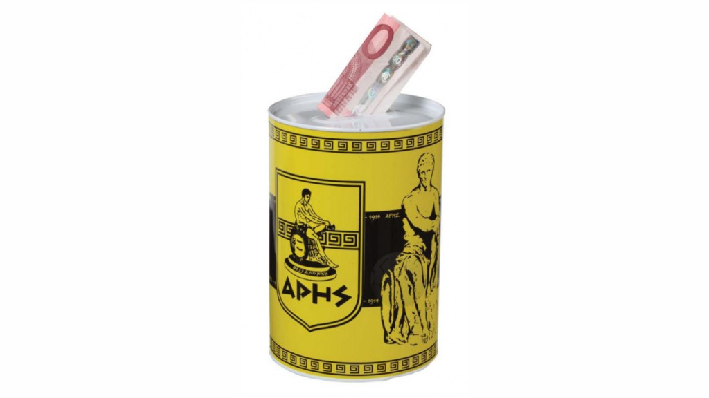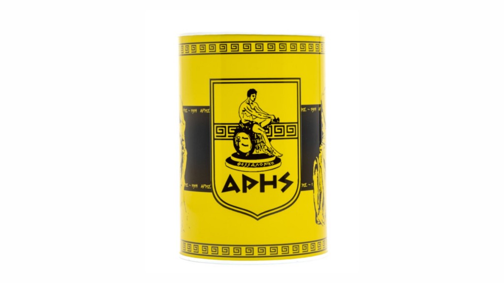 - Προϊόν: Επίσημος μεταλλικός κουμπαράς ARIS FC.